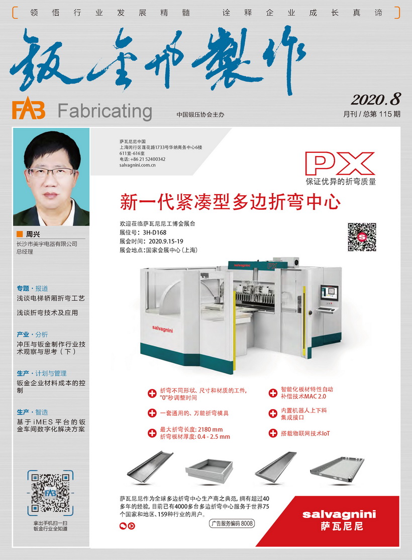 《鈑金與制作》雜志是中國鍛壓協(xié)會主辦的目前國內(nèi)惟一一本面向鈑金制作、管型線材加工行業(yè)的綜合性高端雜志。憑借中國鍛壓協(xié)會多年服務鈑金和管型線材行業(yè)的優(yōu)勢,努力搭建供應商與用戶企業(yè)間的信息平臺,做好政府、高校、科研院所及企業(yè)間溝通的橋梁。