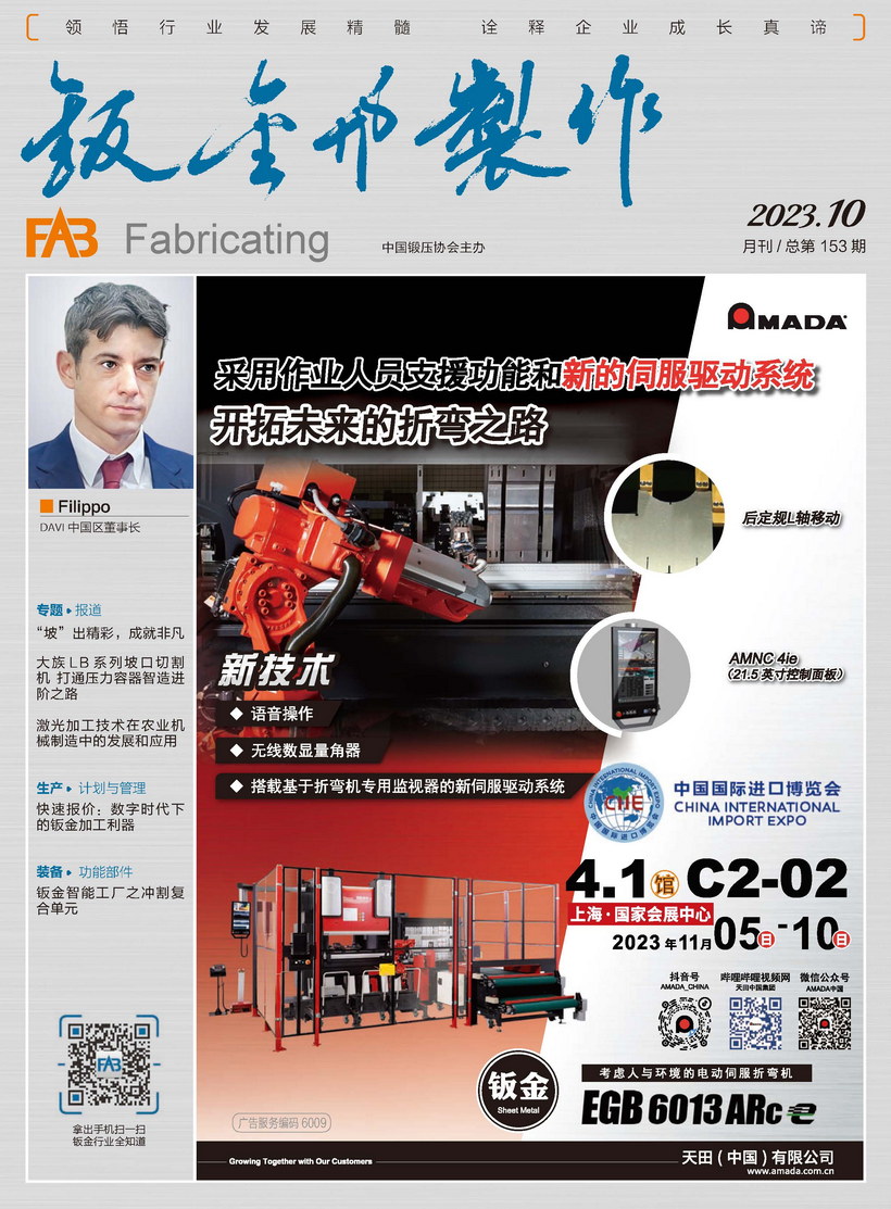 《鈑金與制作》雜志是中國鍛壓協(xié)會主辦的目前國內(nèi)惟一一本面向鈑金制作、管型線材加工行業(yè)的綜合性高端雜志。憑借中國鍛壓協(xié)會多年服務(wù)鈑金和管型線材行業(yè)的優(yōu)勢,努力搭建供應(yīng)商與用戶企業(yè)間的信息平臺,做好政府、高校、科研院所及企業(yè)間溝通的橋梁。
