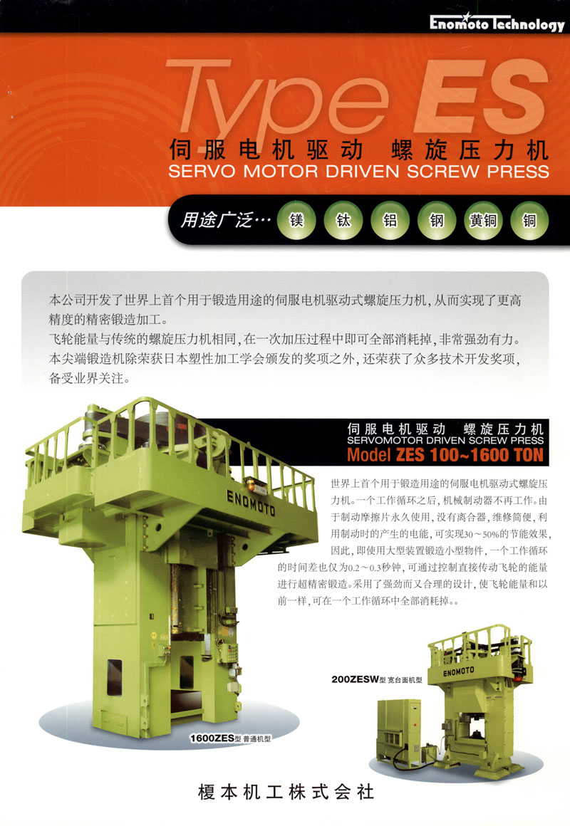 2002發(fā)售伺服馬達(dá)驅(qū)動(dòng)螺旋壓力機(jī)500ZES型