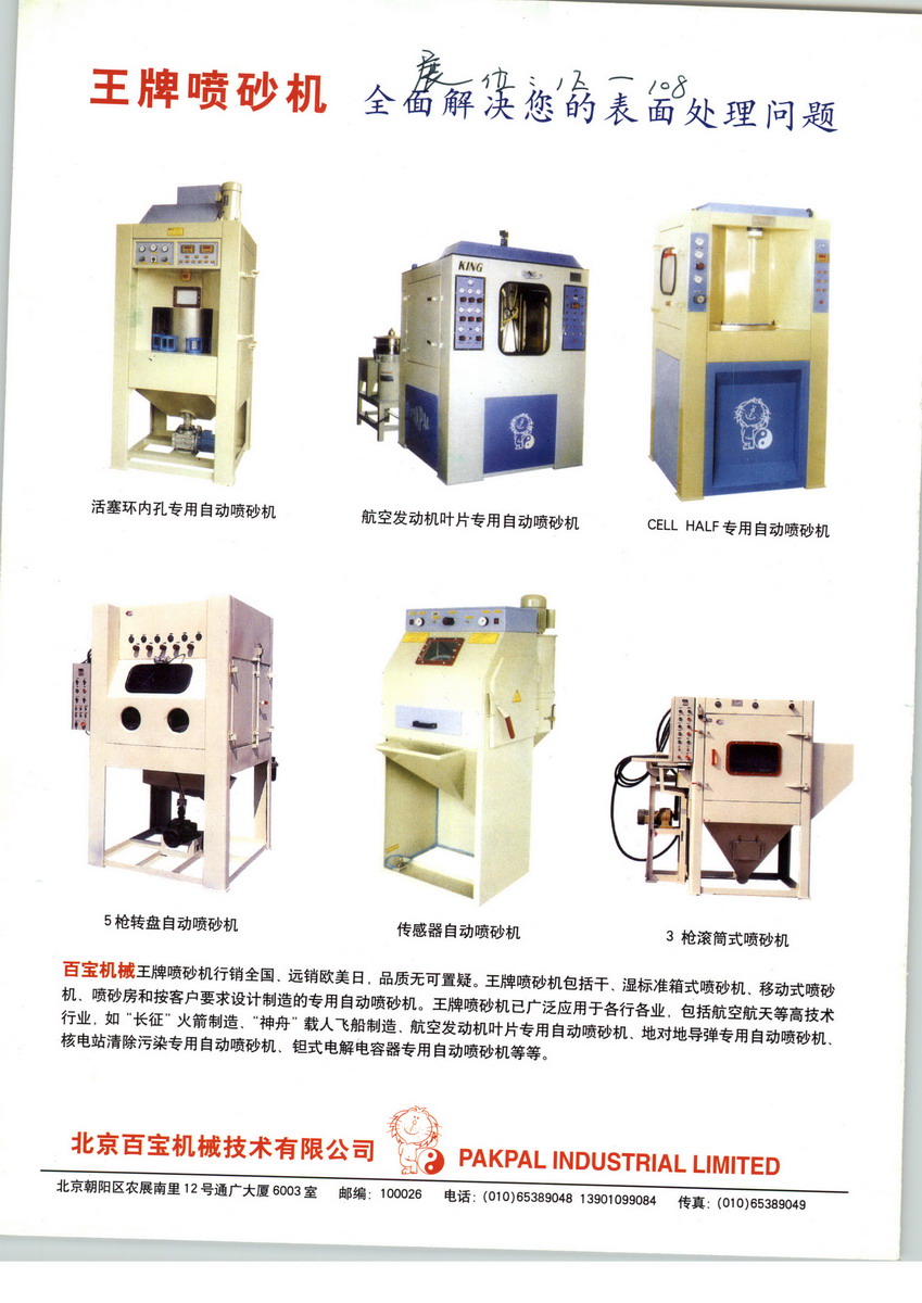北京百寶機械技術有限公司主要經營標準型干、濕噴砂機/專用自動干、濕噴砂機/空壓機及壓縮空氣干燥機、過濾器/壓縮空氣系統(tǒng)設計、工程、設備維修保養(yǎng)、備件供應等專業(yè)服務。