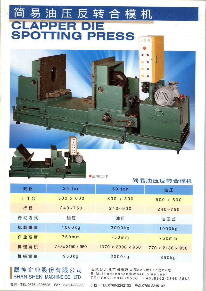 膳神企業(yè)股份有限公司主營簡易油壓反轉(zhuǎn)合模機。