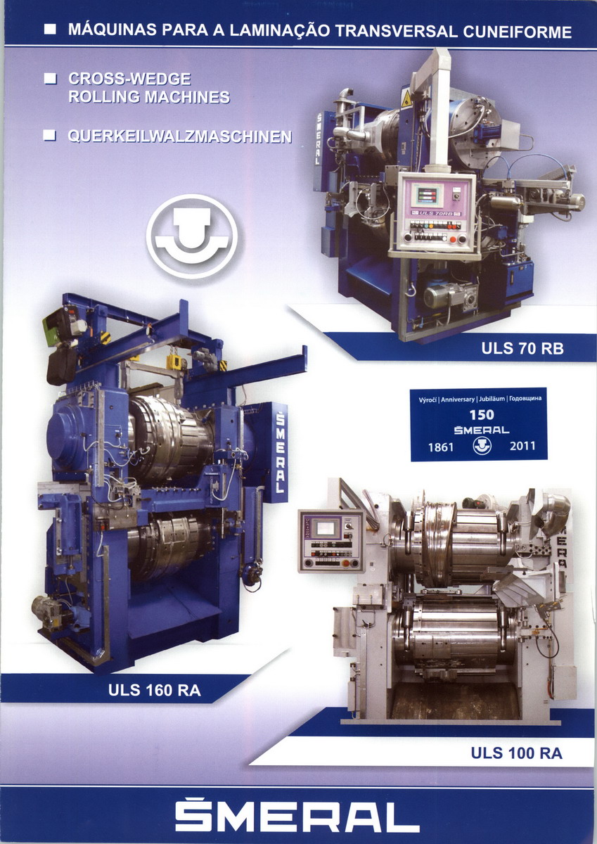 Nowadays basis of our production program are by robots or transfers automatized turnkey forming lines and stand-alone forming machines and other equipment for forging shops. For example presses and drop hammers for hot die forging or forging rolls. Šmeral Brno is the world leading supplier of cross wedge rolling machines for steel and aluminium alloys forming.